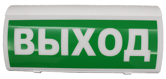 При пожаре оповещатель подсвечивает табло с надписью «ВЫХОД» мигающим белым светом, информируя окружающих о произошедшем возгорании и необходимости покинуть помещение.
